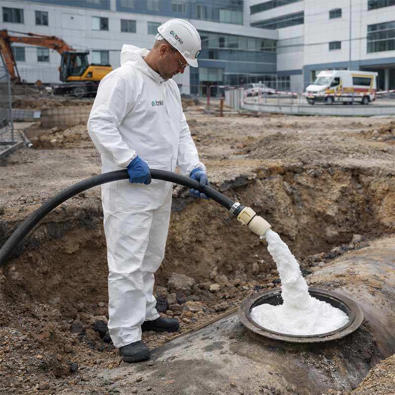 Este material ha demostrado ser altamente eficaz para la inertización de residuos en depósitos, con múltiples ventajas prácticas: rapidez, facilidad de aplicación y cumplimiento normativo para dar de baja instalaciones dedicadas al almacenamiento de productos petrolíferos líquidos (PPL).